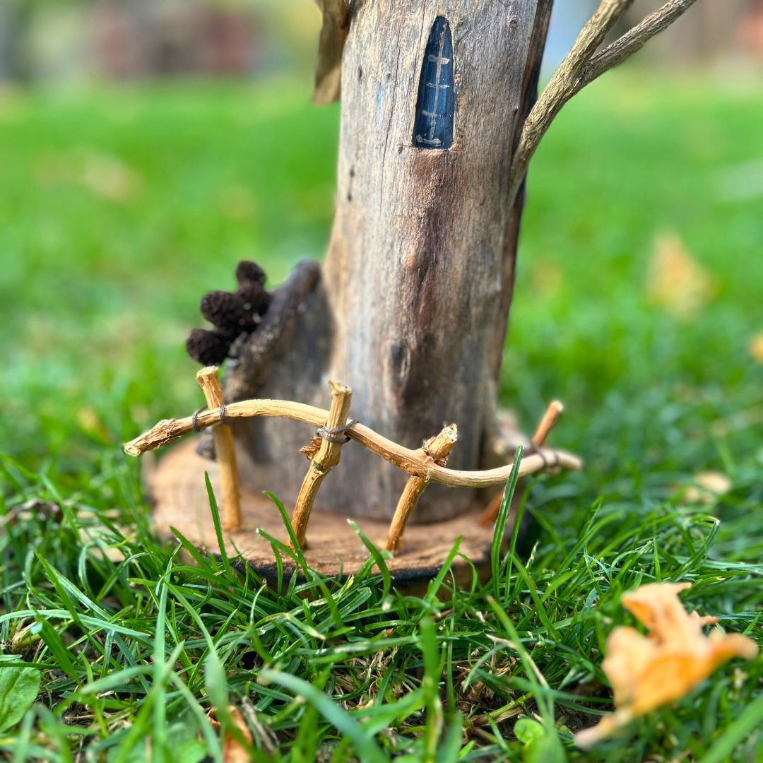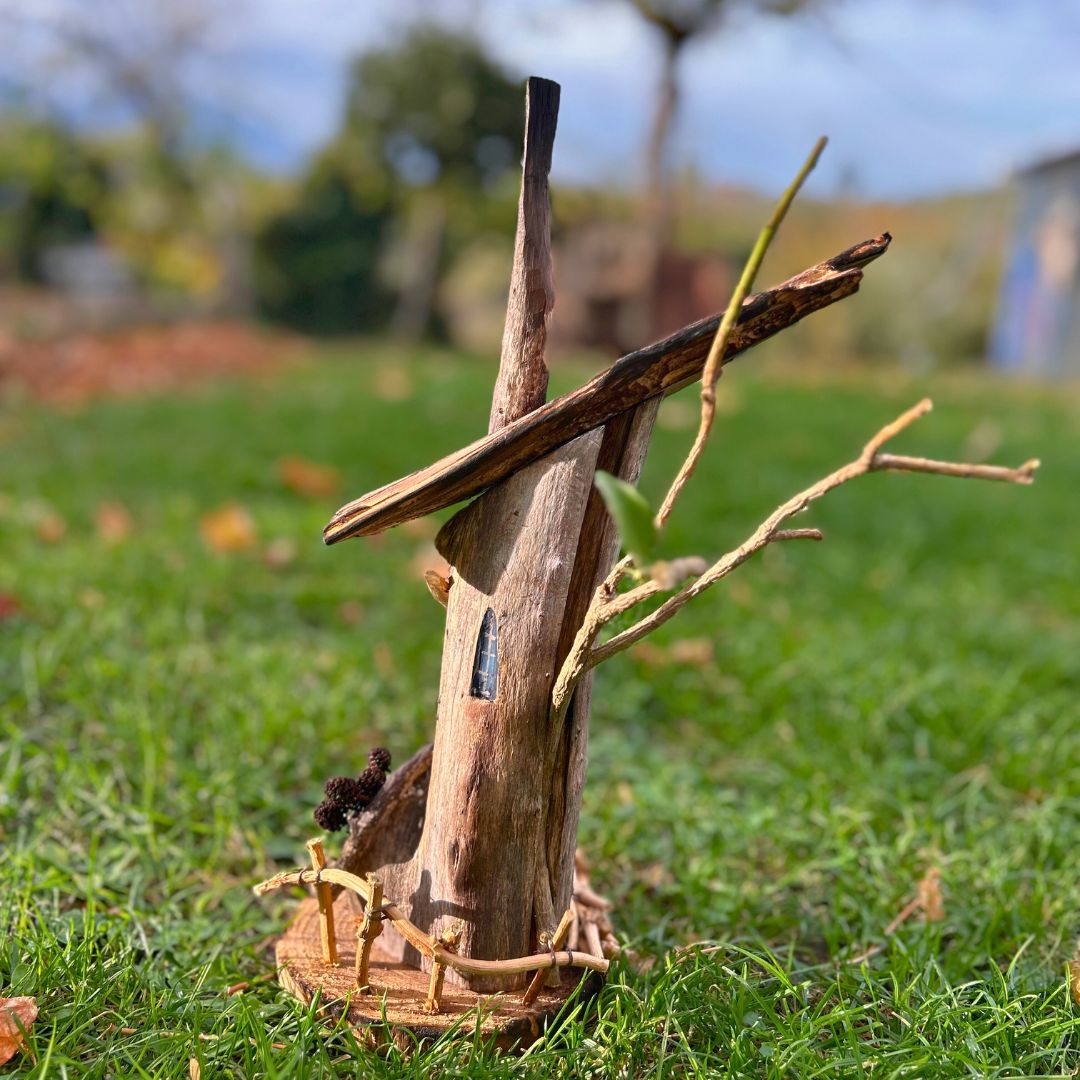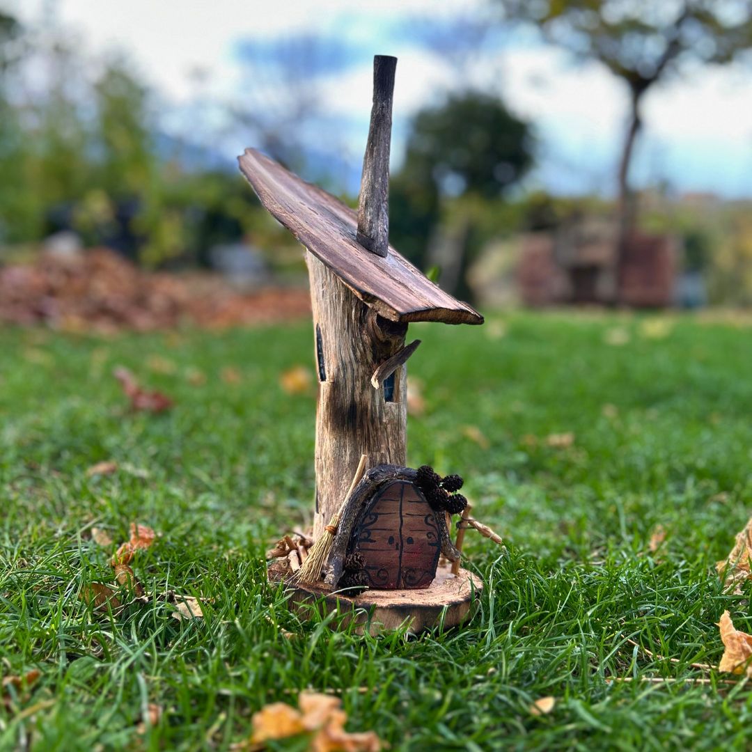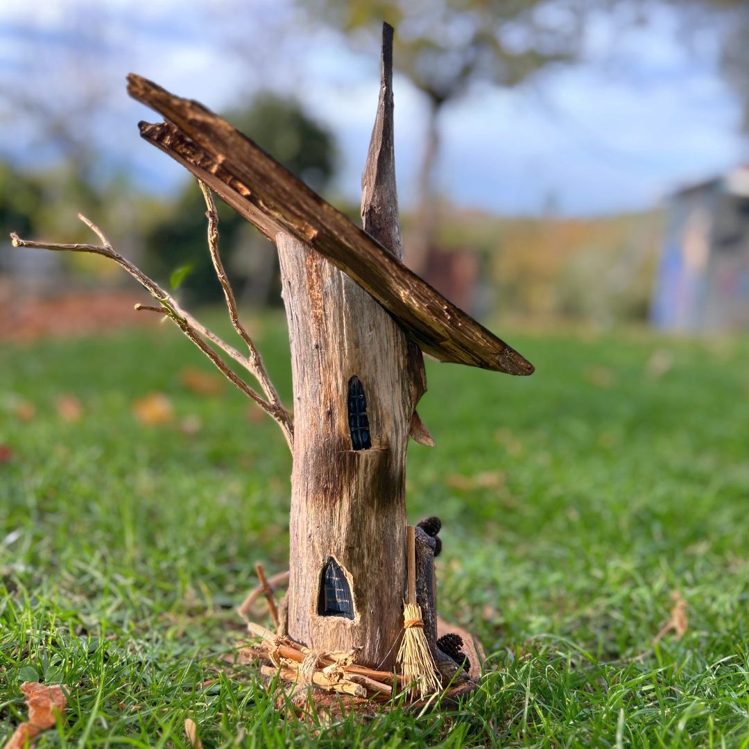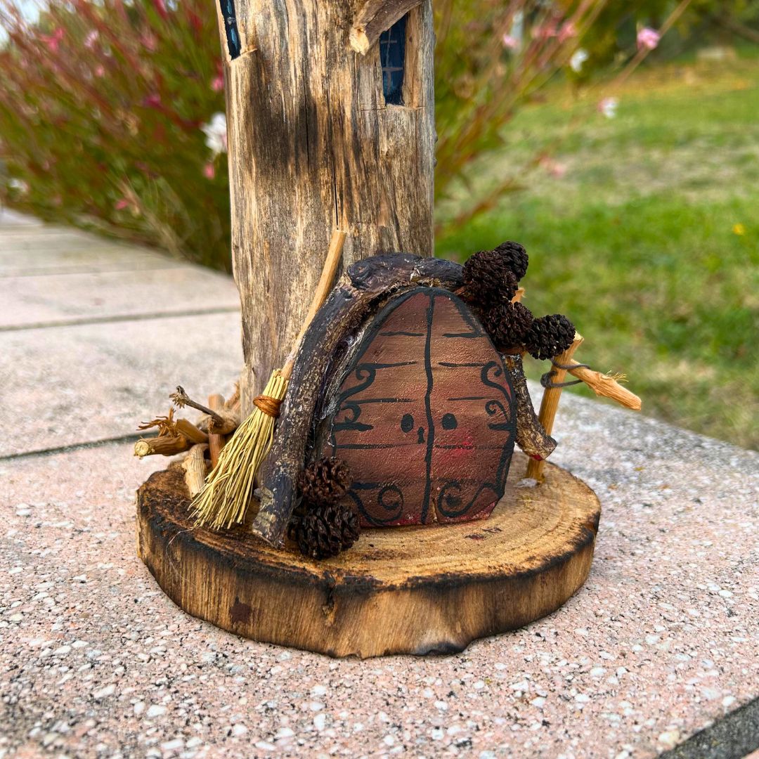 Realizzata interamente a mano e solo con materiali di recupero: dalle finiture naturali alle finestrelle dipinte, fino alla piccola scopa sul portico, ogni accessorio ha avuto un'altra vita e si è qui trasformato.